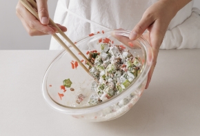 ボウルに納豆を入れて粘りが出るまでしっかり混ぜます。
