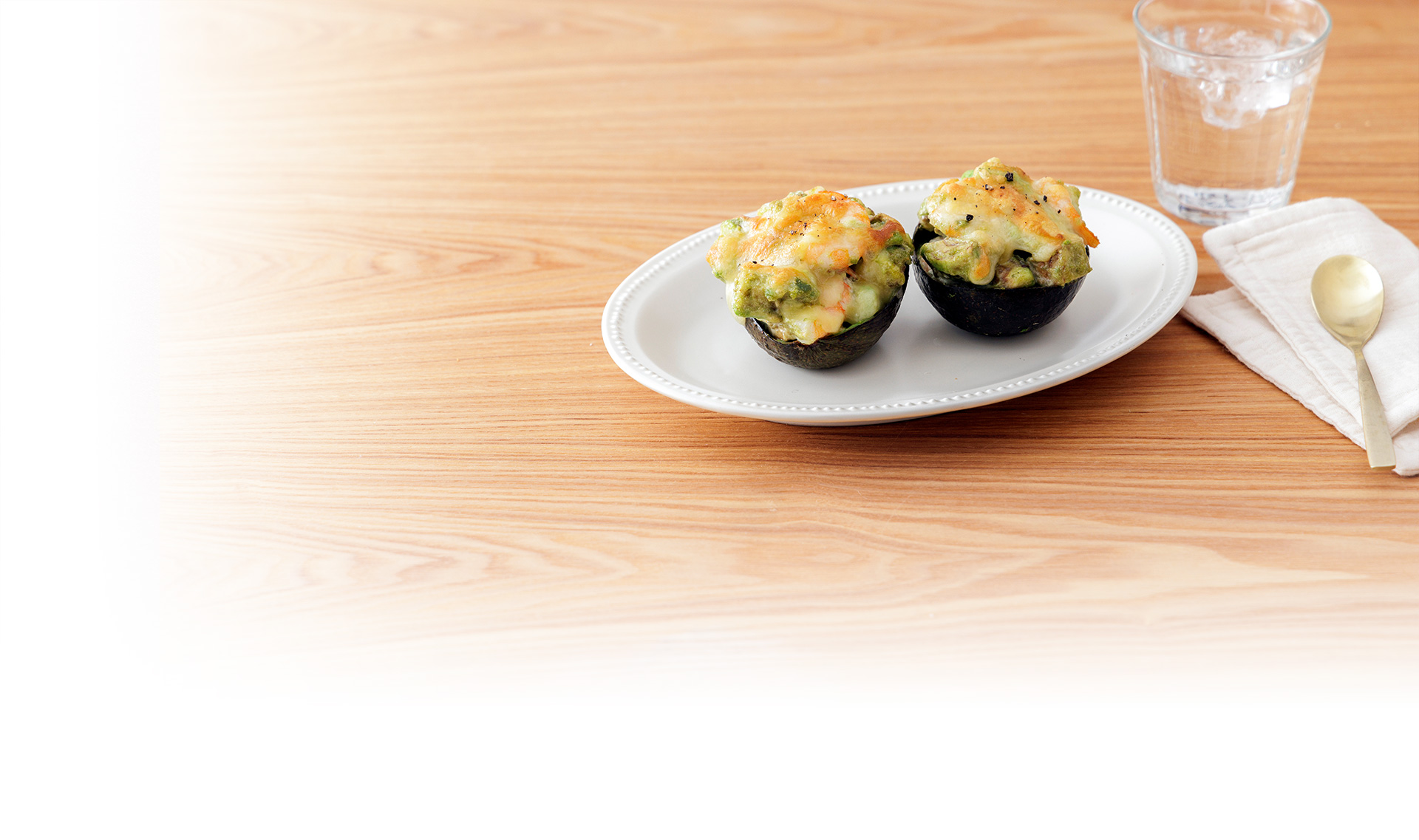 アボカドを丸ごと使った見た目にも可愛いカップグラタンです。ホワイトソースなどは使用せず、気軽に簡単に作れます。パーティーなどの1品にもおススメです。