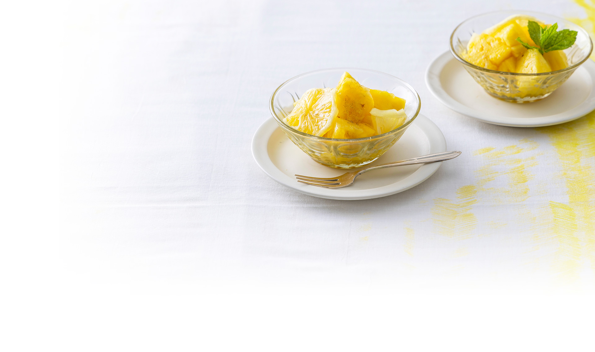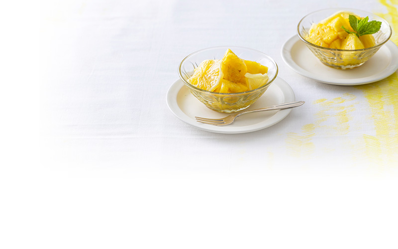 食べやすくカットしたパイナップルに、はちみつ、レモンにピリッと生姜を効かせた大人のマリネです。