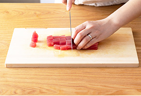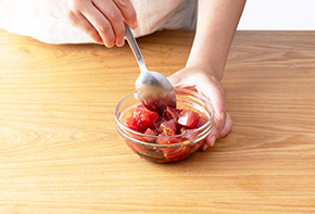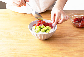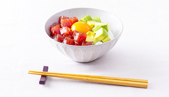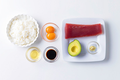 最後に卵黄を乗せて完成です。卵黄を崩して全体に絡めながら食べてください。