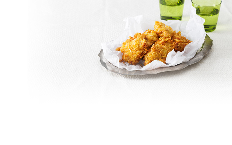 カリッと揚がったらよく油をきって取り出し、器に盛って完成です。クラッカーは多少大きい部分があってもサクッとカリっとした食感がより良く仕上がります。また、好みのスパイスを足してクリスマスのメニューにもピッタリです!