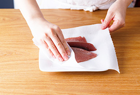 かつおに塩をまんべんなく振り、15分ほどおいておきます。